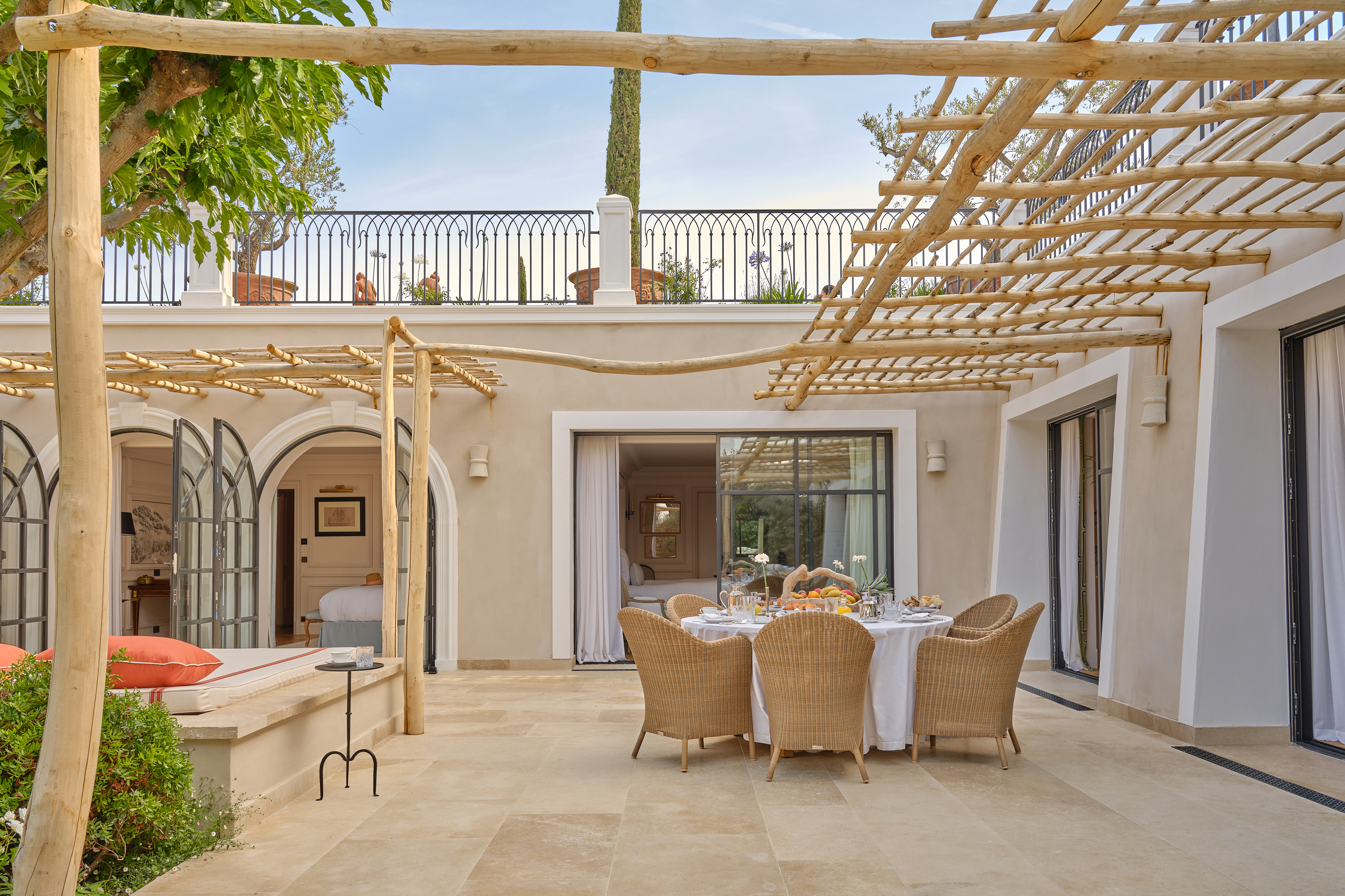 Perched above Saint-Tropez with sweeping views of Pampelonne Bay, Château de la Messardière is a grand 19th-century manor transformed into a five-star palace by Airelles. Boasting 28 rooms and 71 suites within its 12.5-hectare park, it offers multiple restaurants—including Matsuhisa and La Table de la Messardière—along with a full-service spa, indoor and outdoor pools, children's programs, and even a beauty and fitness center. The estate is also recognized for its environmental stewardship, partnering with ornithological conservation efforts.