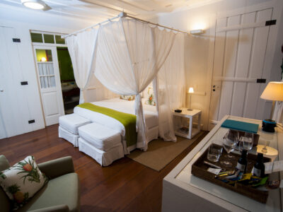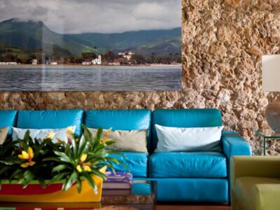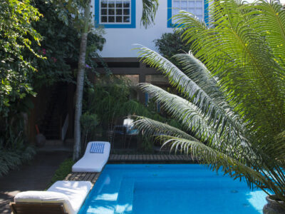 Conceived to be a real guest house, Casa Turquesa is a gorgeous gem in the historical centre of Paraty. Occupying a restored mansion that faithfully recreates the façade of an 18th century historic townhouse, this turquoise beauty is ideal for those seeking privacy and relaxation. The concept of its creation was “Why not create a place where the experience of feeling at home is the priority?” Featuring 9 spacious and pleasantly decorated suites, a courtyard surrounded by a garden full of orchids, a swimming pool with hydro massage spa and an attentive staff and personalized service, Casa Turquesa is ideal for couples, as they do not accept children under 14 years old.