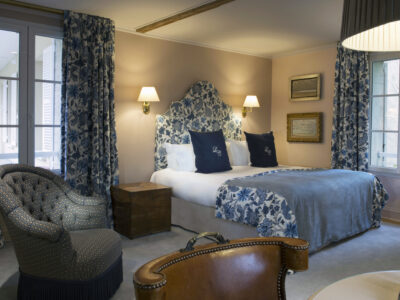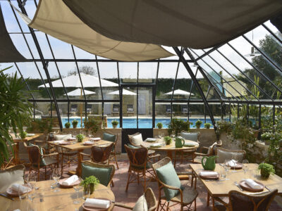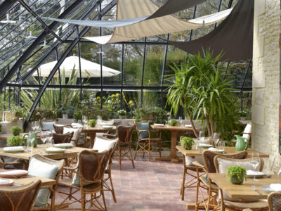 Located on the Normandy coast between Bayeux and the D-Day beaches, Château La Chenevière is a restored 18th-century manor wrapped in English-style gardens. Its 29–30 rooms and suites offer antique charm and modern comfort, complemented by an outdoor heated pool, tennis court, and lush, permaculture-inspired grounds. Dining options include Le Botaniste, serving inventive Normandy cuisine, and Le Petit Jardin, tucked within the orangery and offering farm-to-table dishes drawn from the château’s gardens.