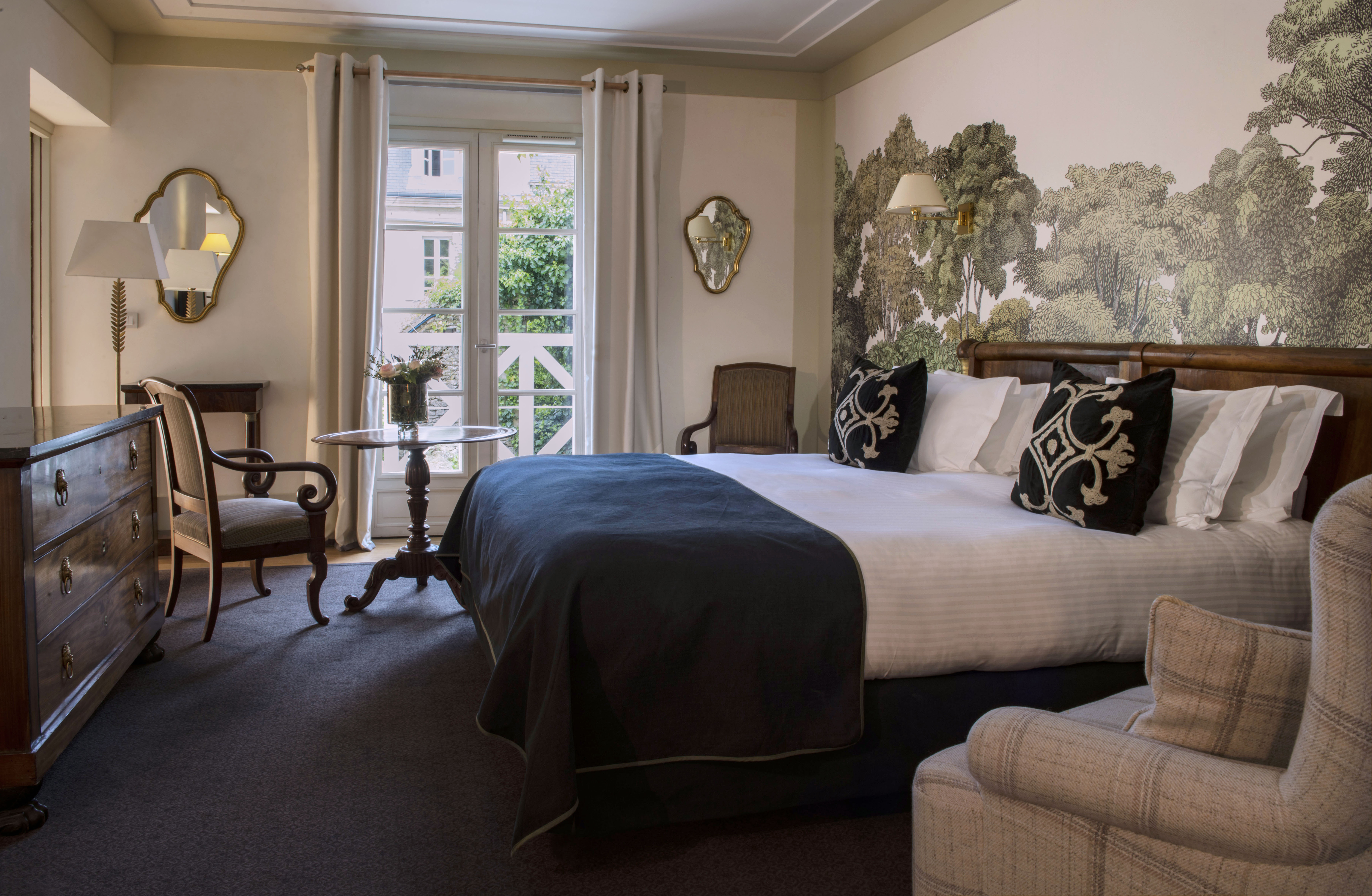 Located on the Normandy coast between Bayeux and the D-Day beaches, Château La Chenevière is a restored 18th-century manor wrapped in English-style gardens. Its 29–30 rooms and suites offer antique charm and modern comfort, complemented by an outdoor heated pool, tennis court, and lush, permaculture-inspired grounds. Dining options include Le Botaniste, serving inventive Normandy cuisine, and Le Petit Jardin, tucked within the orangery and offering farm-to-table dishes drawn from the château’s gardens.