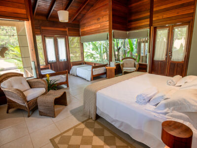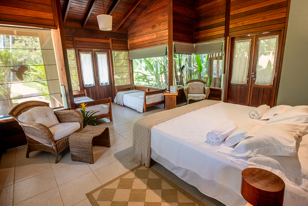 Cristalino Lodge is much more than just a hotel. Located by the Cristalino River within a private reserve that stretches over more than 11.000 hectares in the southern part of the Brazilian Amazon region, it has been carefully designed to harmoniously integrate the surrounding jungle. Guests can enjoy the comfort of the bungalows and community areas while experiencing firsthand the preservation of nature. Built from wood and cool ceramic tile flooring, the rooms blend into the vegetation and are naturally ventilated, thanks to the air ducted ceilings. Winner of numerous awards including Best Eco Lodges in the World Award (by National Geographic) and National and World Savers Award Winner (by Condé Nast Traveller), the lodge’s commitment to responsible tourism is also evident in the solar water heating and biological waste treatment systems that are an integral part of its environmental conservation, focusing on the preservation of the environmental reserve.