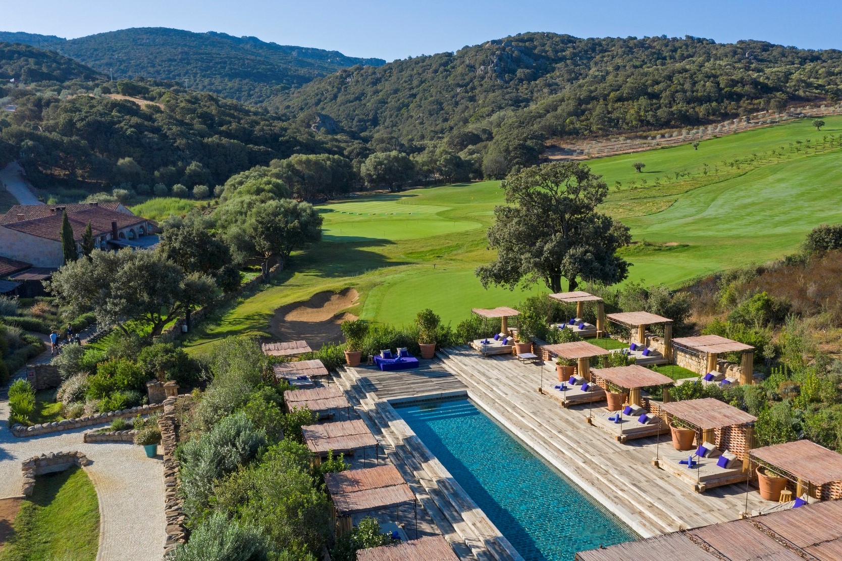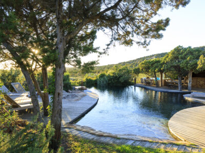 Domaine de Murtoli is a 5,000-acre estate in southern Corsica, offering a collection of restored shepherds' dwellings and patrician homes. Guests can choose from 20 private villas, each with its own pool and outdoor kitchen. The estate features a beach restaurant, a grotto dining room, and a farm-to-table culinary experience. Activities include hiking, horseback riding, and wine tasting.