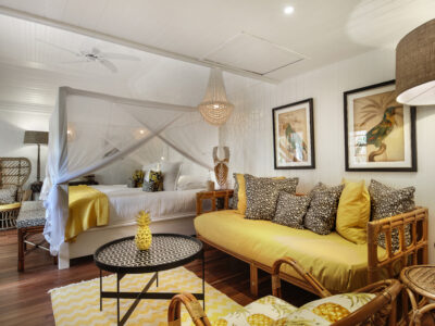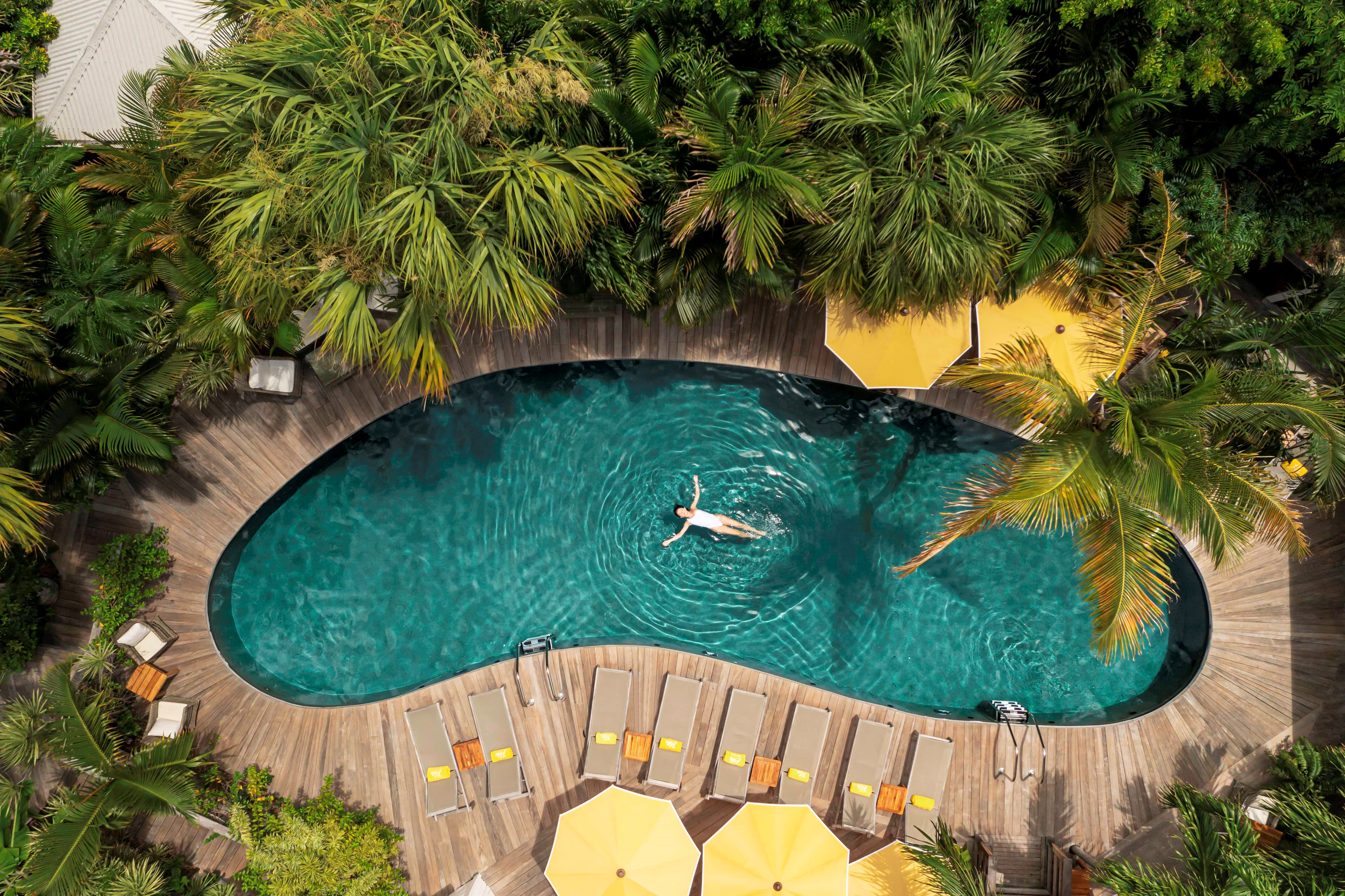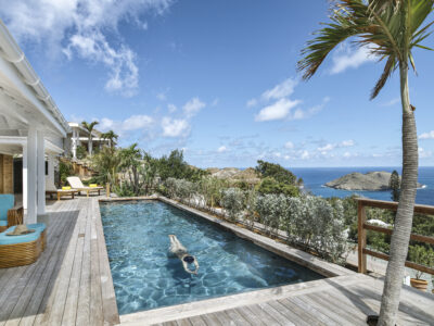 The Villa Marie property was recently rebranded on Colombier hill as Gyp Sea Hotel. With a beautiful powder-soft sand beach, it has only 21 beautiful bungalows and gorgeous villas on the Colombier hillside, overlooking the spectacular Flamands Beach. The Master Villas have private pools, two double bedrooms, elegant roll-top bath tub, artisanal furnishings, indoor lounge area with a bohemian take and superb panoramas. Perfect for spending days relaxing at the beach and in the tropical gardens, the hotel is just a short drive away from the island’s main attractions and has its own beloved Beach Club, the GypSea Beach, on Pelican Beach. The hotel main pool is surrounded by cacti, mango trees and bougainvilleas. The restaurant offers dining on French fare and there is also a lovely Pure Altitude Spa with an unmissable signature Pure Coconut Ritual.