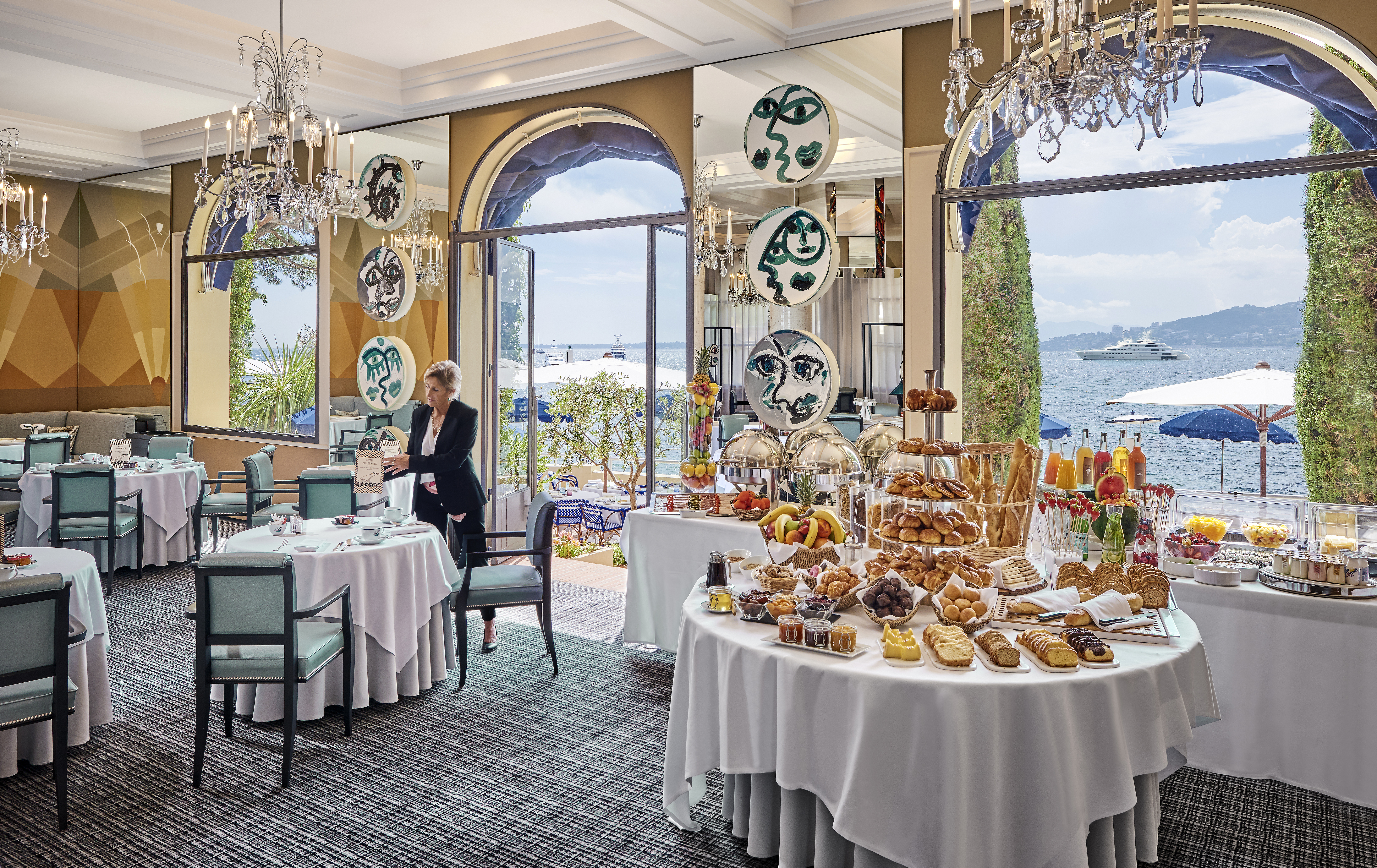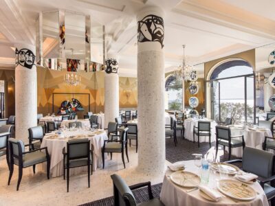 This Art-Deco palace on Cap d’Antibes once hosted F. Scott Fitzgerald in the 1930s. Today, Hôtel Belles Rives retains seaside glamour with direct beach access, a Valmont spa, the Michelin-listed restaurant La Passagère, a lounge bar, and vibrant summer entertainment.