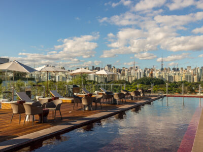 Visually stunning in architecture, Unique, as the name suggests, is simply a unique hotel. Located in the end of Jardins neighborhood with views of Ibirapuera Park, the hotel stands out not only for its elegance and bold contemporary design, but also its surprising sensorial experiences (like the darkness inside the elevators and the sinuous hall with ambient music). The excellence in service can be affirmed having received some of industry´s most coveted awards, which include Condé Nast Traveler´s “50 Best Hotels in the World” and “Best in South America”. For those who are in the city not only for business, leisure options here include two indoor pools (including a toboggan run), with the open red swimming pool with panoramic view the highlight. We cannot fail to mention the famous Skye, one of the most charming restaurants in the world and elected the best rooftop in São Paulo.