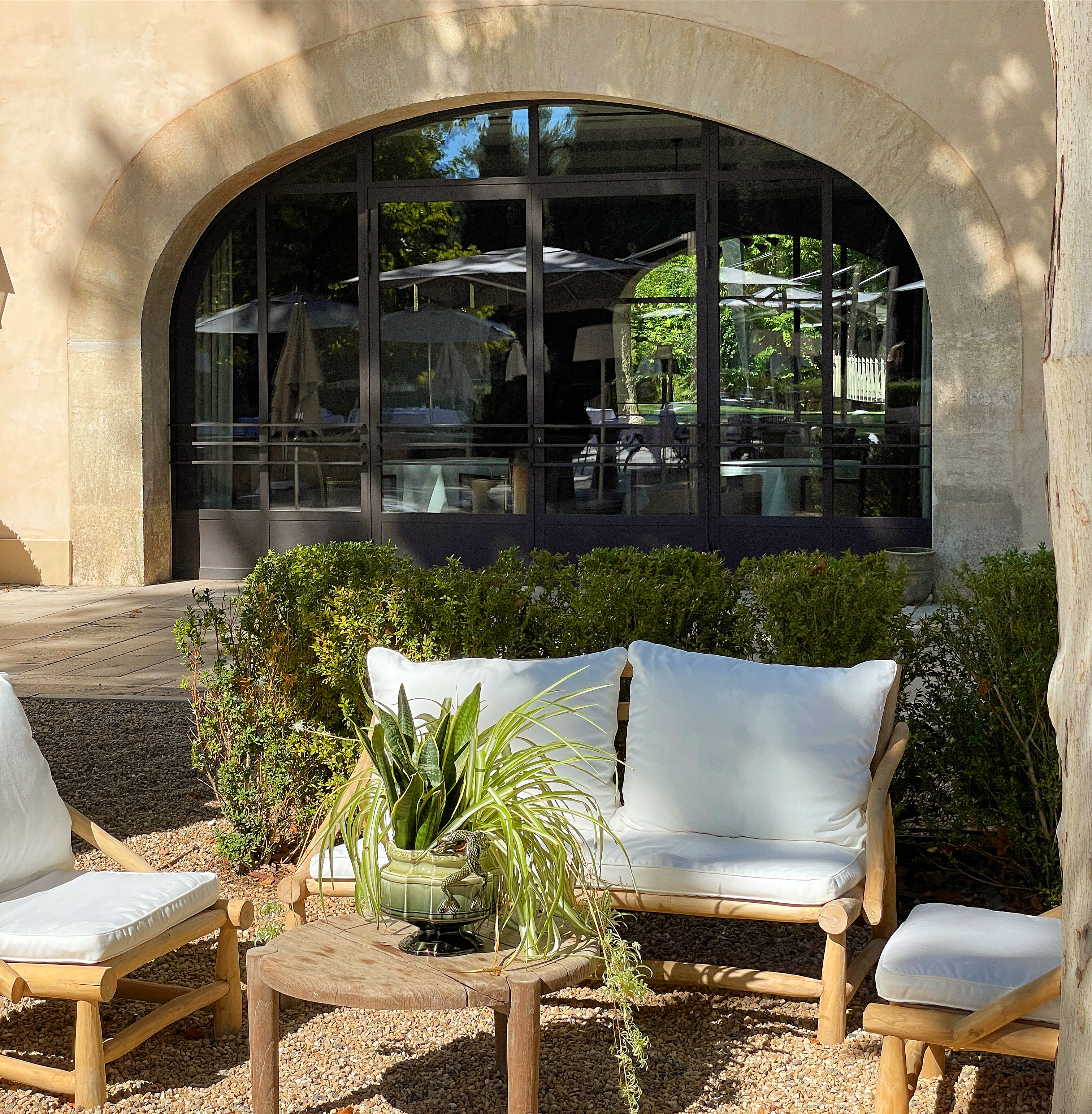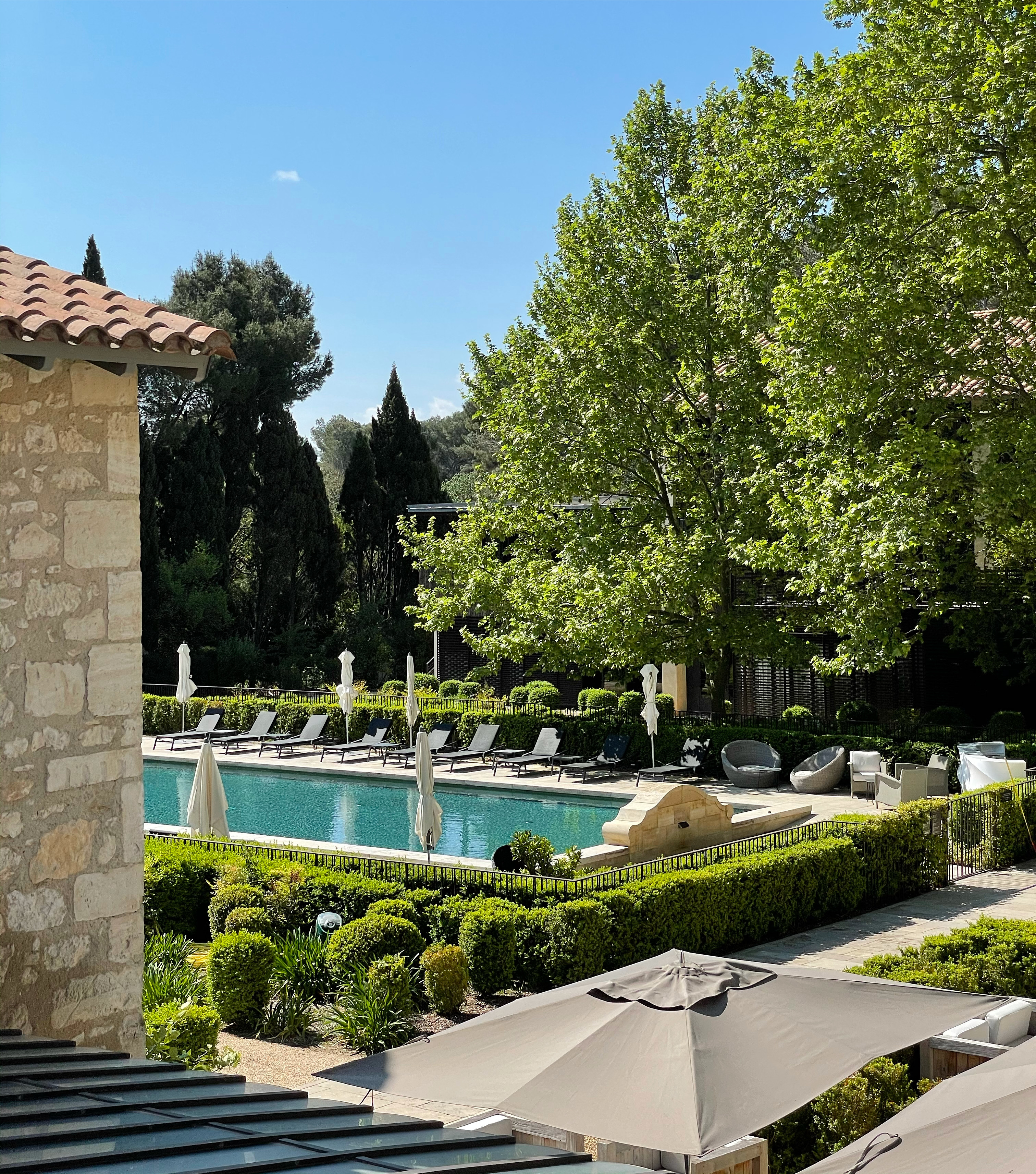 Once a working farm estate in Les Baux-de-Provence, Le Domaine de Manville has been transformed into a chic 5-star country retreat. Its 30 rooms and suites, along with private villas, surround a courtyard of olive trees and stone arcades. The eco-sensitive domain features an 18-hole golf course integrated into the landscape, a spa, and fine dining that reflects the rhythms of the seasons.
